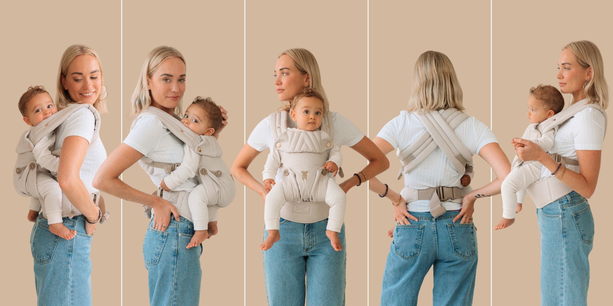 Unsere Träger bieten eine Vielzahl von Tragepositionen, wie zum Beispiel nach innen gerichtet, nach vorne gerichtet und auf dem Rücken tragen. Jede Position wurde entwickelt, um unterschiedlichen Entwicklungsstufen Ihres Babys und Ihrem eigenen Komfort gerecht zu werden.